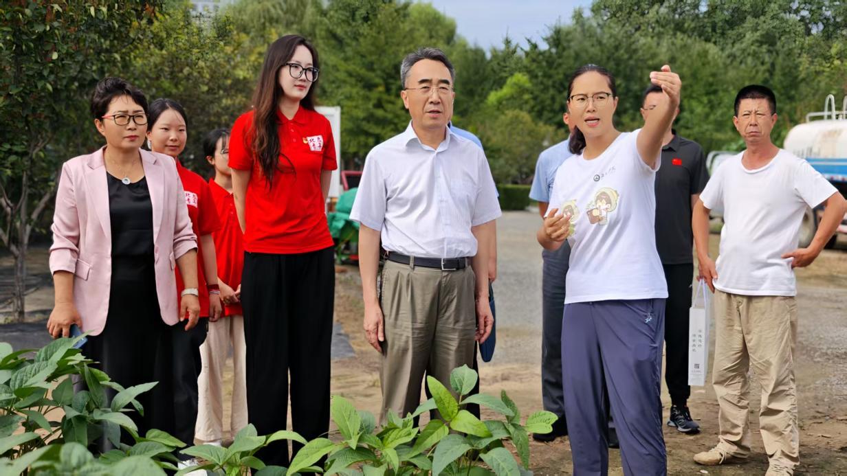 实践期间,学校党委书记赵锋、党委副书记郑品石一行赴怀柔区庙城镇桃山村看望慰问师生,与师生同上田间地头“大思政课”。校领导走进田间体验实践成果,深入了解大豆新品种培育情况,勉励师生厚植爱农情怀,练就兴农本领,在乡村振兴大舞台上建功立业。座谈中,师生分享实践收获,全国劳动模范宋丽新等校友参与探讨科技支农新机制,让“自找苦吃”的青春誓言在田野间落地生根。